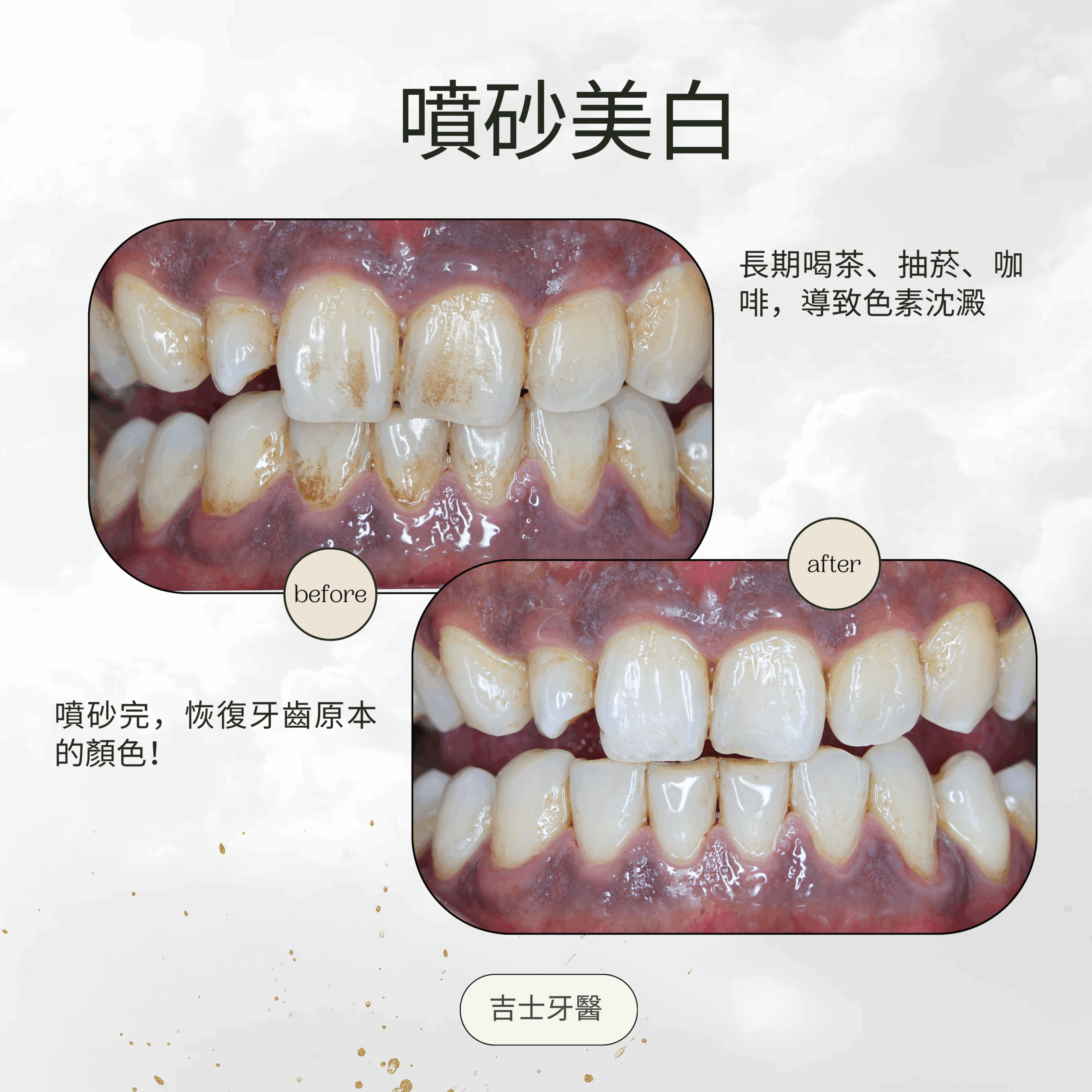 每天兩杯咖啡,或是曾經抽過菸都會有色素沈澱,讓牙齒變黑變黃想做美白,又擔心會術後敏感